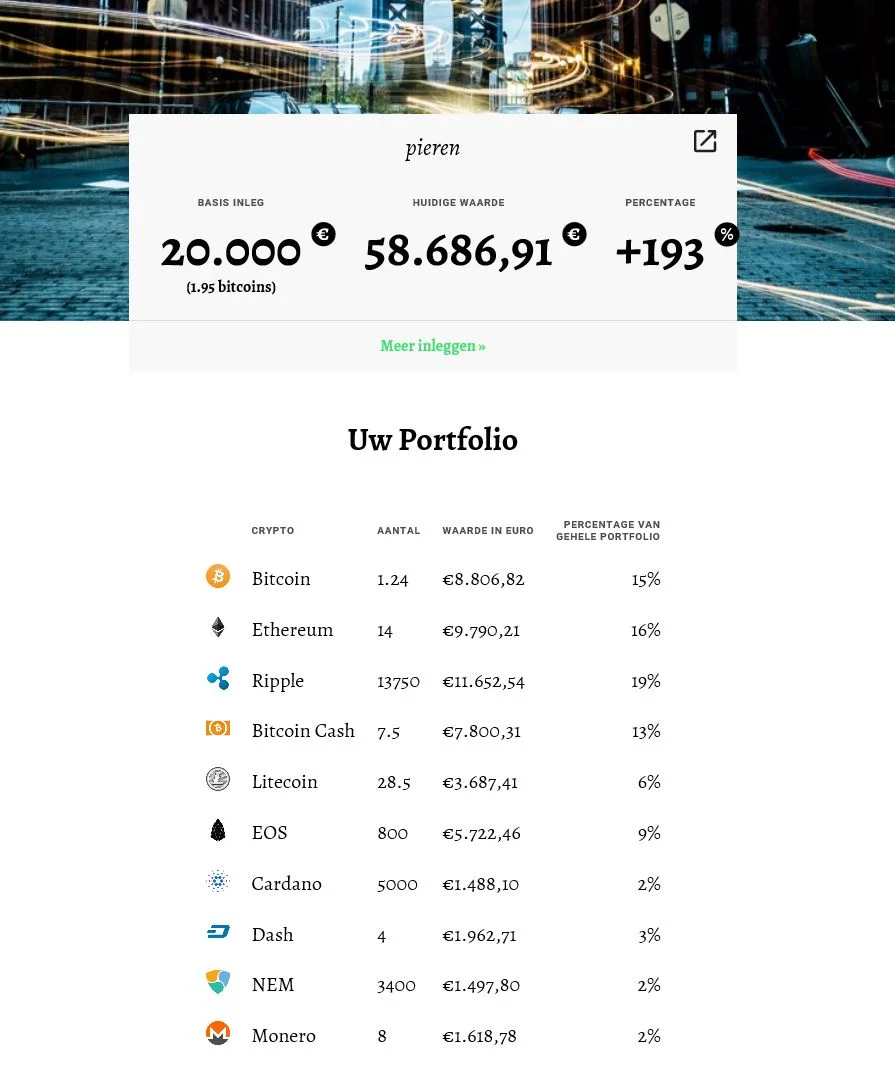 Wilt u investeren? Dat kan al vanaf € 1.000,-.  Wel moet u aan het juiste investeringsprofiel voldoen. Deze wordt opgemaakt aan de hand van een vragenlijst ten tijde van de aanmelding. Investeren in cryptocurrencies is erg volatiel en brengt veel risico's met zich mee, wij willen er zeker van zijn dat u zich hiervan bewust bent.